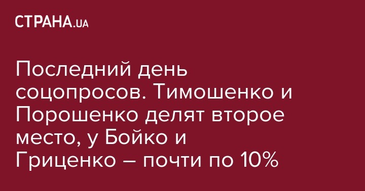 Последний день соцопросов. Тимошенко и Порошенко делят второе место, у Бойко и Гриценко – почти по 10%