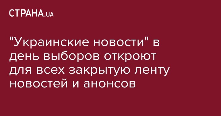 В день выборов президента Украины, 31 марта, информационное агентство "Украинские новости" открывают свободный доступ к платной ленте новостей и новому продукту – онлайн анонсам событий для всех желающих. Об этом говорится на сайте "Украинских новостей".