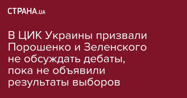 "До установления Центральной избирательной комиссией результатов голосования в день выборов президента Украины 31 марта 2019 года проведение предвыборной агитации в любых ее формах является грубым нарушением требований закона ("О выборах президента Украины - Прим. ред.). Дискуссии между субъектами избирательного процесса о месте и условиях проведения теледебатов могут быть восприняты как предвыборная агитация", - подчеркивают в ЦИК.
