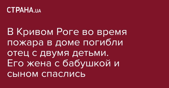 В субботу, 6 апреля, в Кривом Роге во время пожара в частном доме погибли три человека, в том числе двое детей. Еще трое пострадали. Об этом сообщает пресс-служба ГосЧС Украины в Днепропетровской области.
