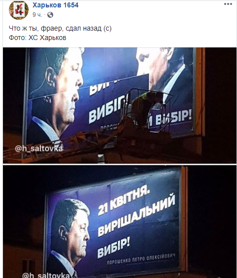 "Что ж ты, фраер, сдал назад?" - пишут в харьковских группах и размещают фото процесса переклейки билбордов.