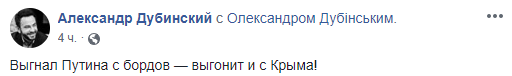 "Выгнал Путина с бордов - выгонит и с Крыма!" - иронизирует журналист Александр Дубинский.