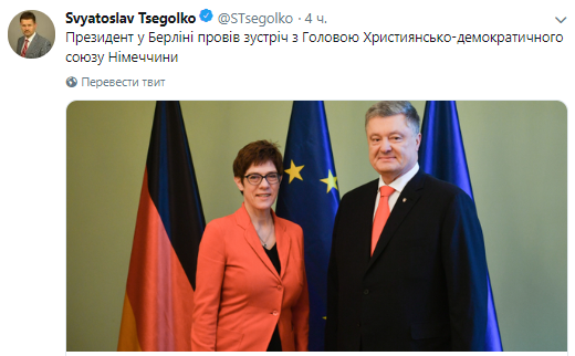 Позднее, в 18.00, Эмманюэль Макрон должен принять в Елисейском дворце президента Украины Петра Порошенко.