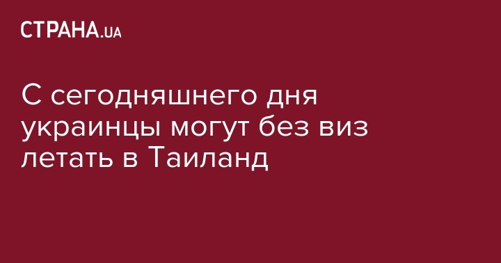 С сегодня, 14 апреля украинцы могут путешествовать в Таиланд с туристической целью без виз. Об этом в Facebook сообщает Департамент консульской службы МИД Украины.