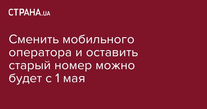 Украинцам назвали очередной срок, когда в стране заработает сервисная услуга по смене операторов мобильной связи с сохранением прежнего абонентского номера. Это станет возможным уже через две недели, начиная с 1 мая.