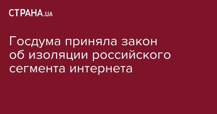 Госдума РФ приняла в третьем, окончательном чтении законопроект о так называемом "суверенном интернете". Об этом сообщается на сайте Госдумы РФ.