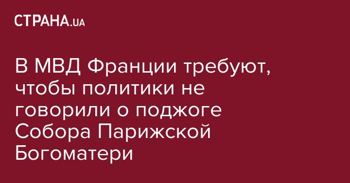 Министр внутренних дел Франции Кристоф Кастанер во вторник, 16 апреля, призвал местных политиков прекратить обсуждение того, что возгорание в Соборе Парижской Богоматери случилось в результате поджога, передает Интерфакс.