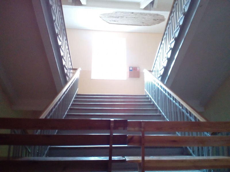 В харьковской школе № 5 посреди дня обвалилась часть потолка. Опасный инцидент произошел в пролете лестничной клетки.