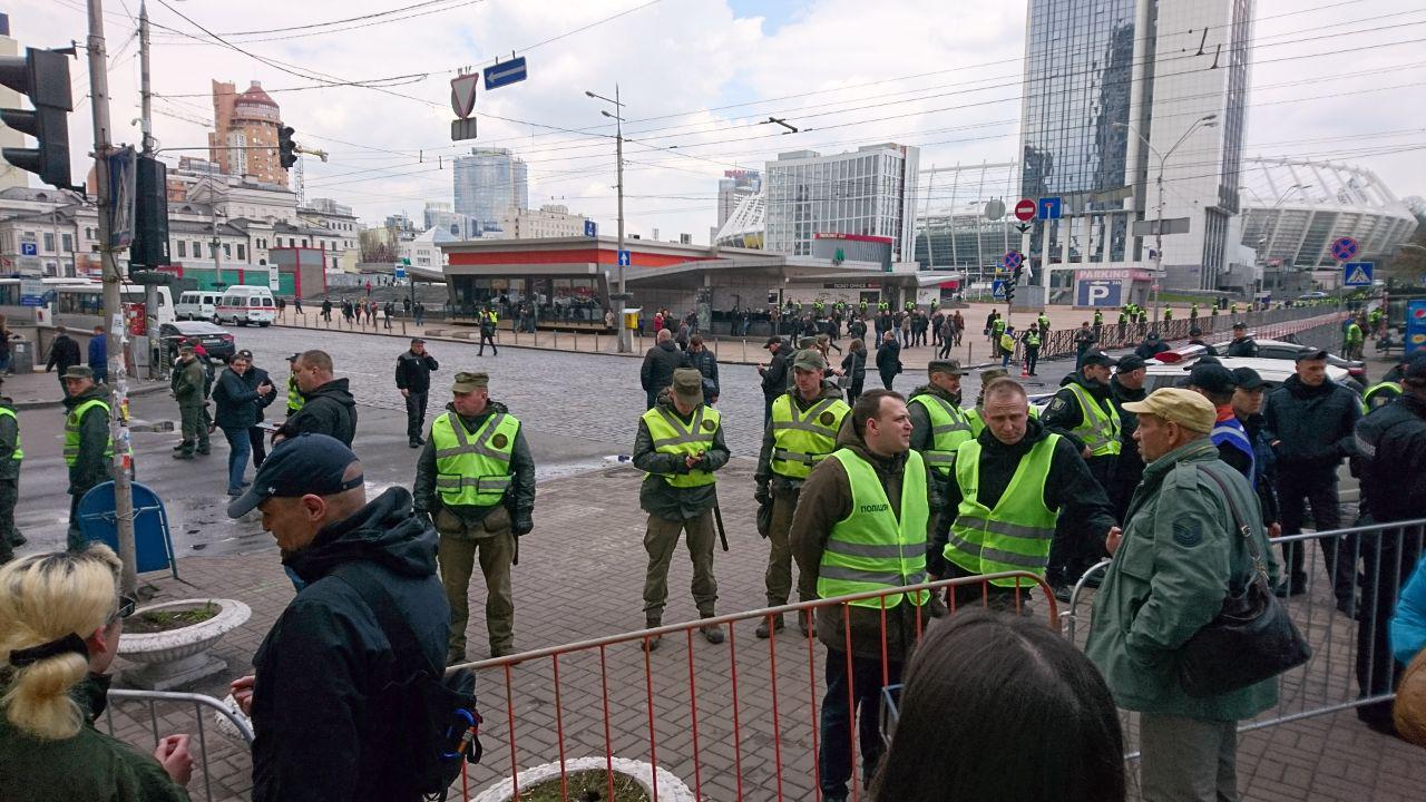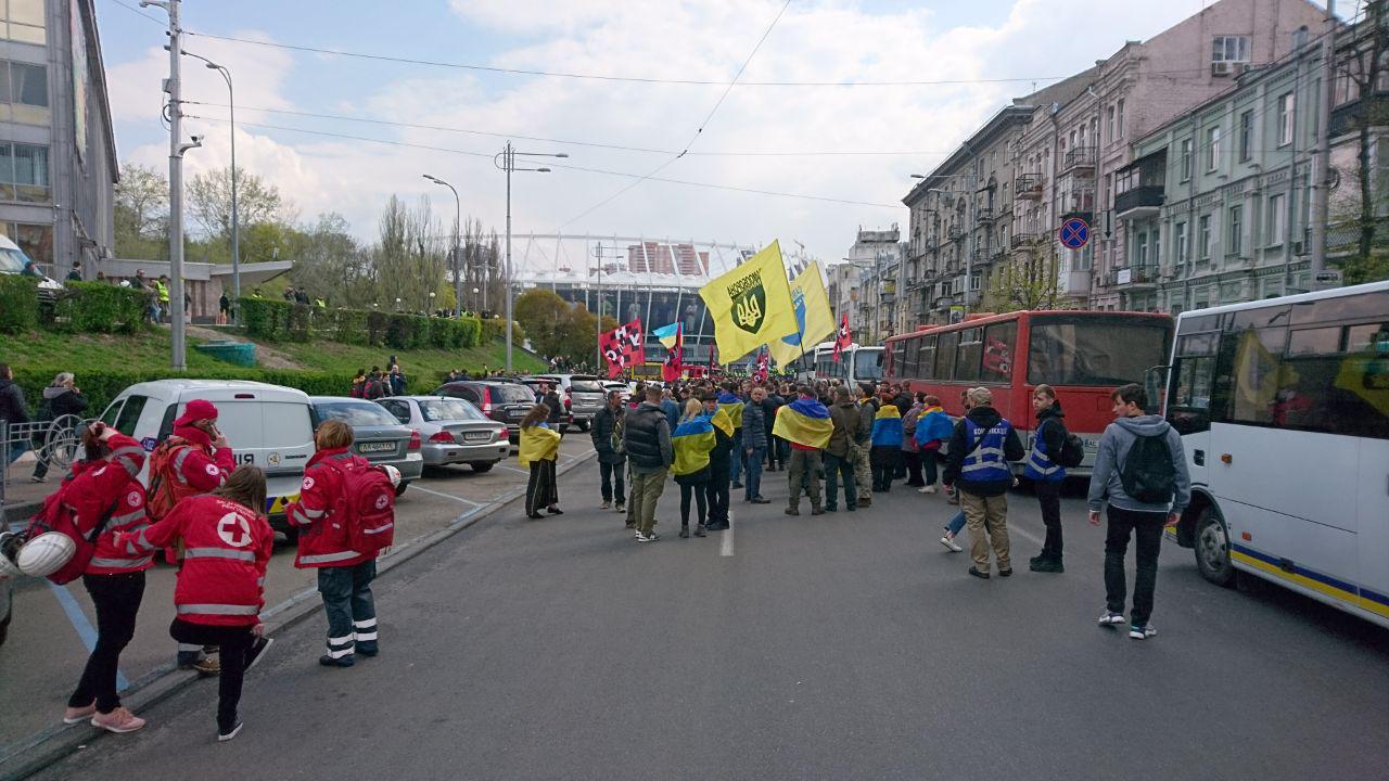 16:53 К стадиону пришел Анатолий Чайка, который поддерживал на судах Надежду Савченко и активиста Юрия Хорта, которого судили за разорванный портрет Петра Порошенко.