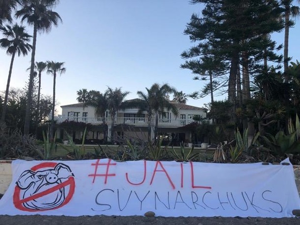 Активисты провели акцию у дома президента, общая площадь которого, по их информации, составляет почти 1254 квадратных метра. В частности, на заборе усадьбы они разместили плакаты с надписями "Грабят" и "Будь ответственным. Держи слово". Также представители Нацкорпуса нарисовали на асфальте напротив виллы изображение свиньи и оставили надпись "Мародер".