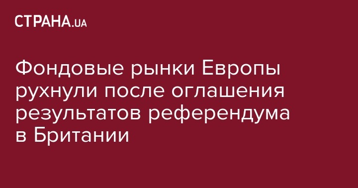 После оглашения итогов референдума в Великобритании о выходе страны из Евросоюза, рухнули европейские фондовые рынки. Об этом пишет сегодня "Газета.ru".