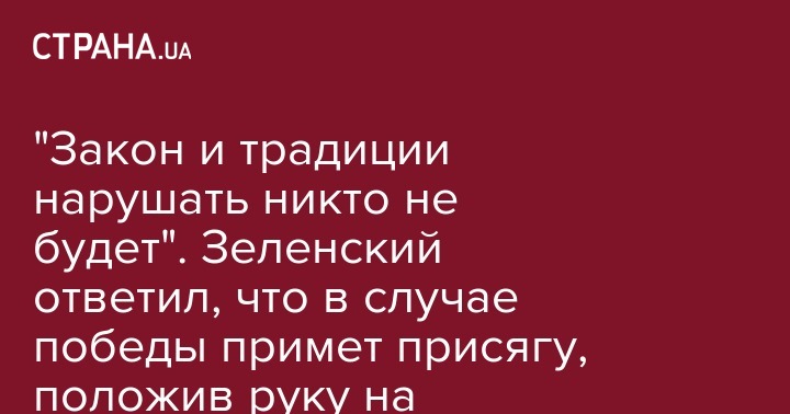"Закон и традиции нарушать никто не будет". Зеленский ответил, что в случае победы примет присягу, положив руку на Евангелие