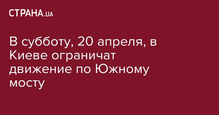 В субботу, 20 апреля, в Киеве ограничат движение по Южному мосту