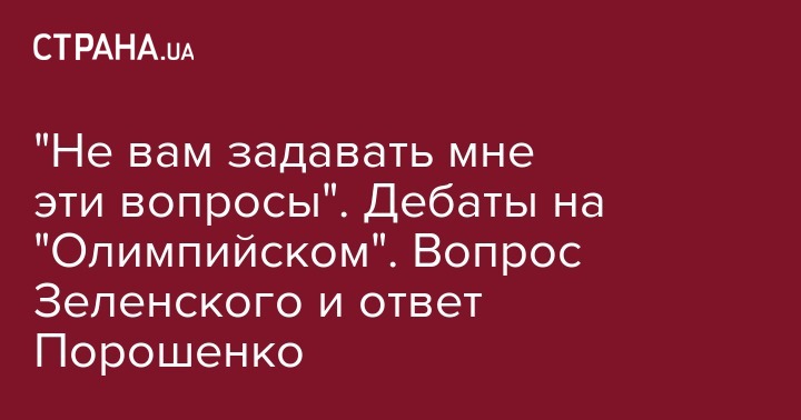 "Страна" публикует вопросы Владимира Зеленского Петру Порошенко: "Как так получилось, что Украина превратилось в самое бедное государство в Европе? Почему никто не сидит за Иловайск и Дебальцево? Не хотите ли вы прожить на минимальную зарплату? Почему вы отправили 23 моряка на верную смерть? Почему не покараны соратники Януковича? Почему не снята неприкосновенность с депутатов? Сколько вам занесли за Роттердам+? Выберите любой из этих вопросов".