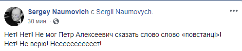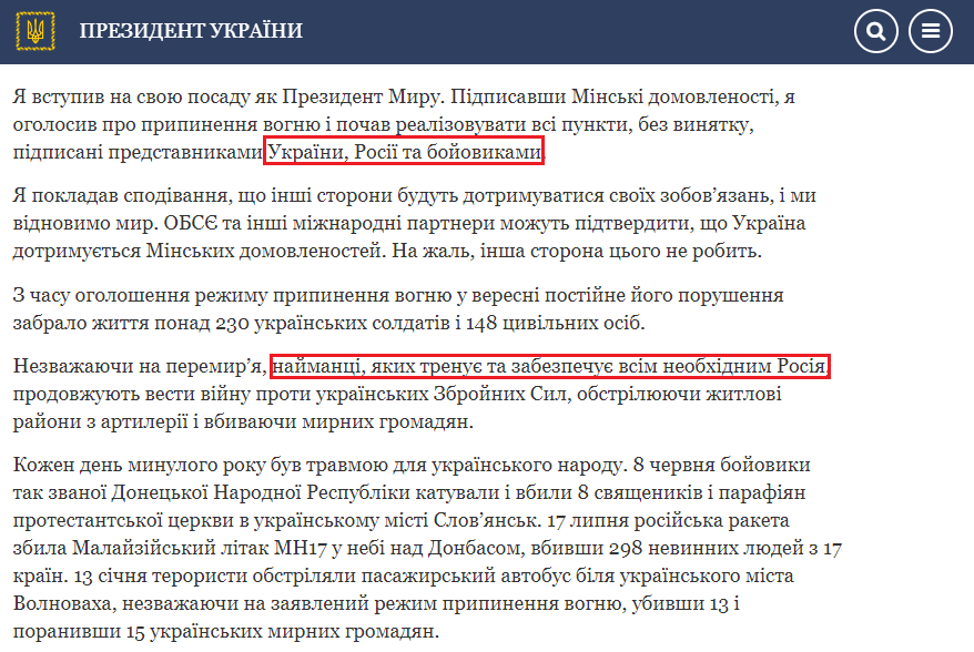 Пользователь Facebook Сергей Наумович не поленился и отыскал на сайте президента Украины информацию от 20 января 2015 года, в которой несколько раз употребляется слово "повстанцы". С этой речью Петр Порошенко выступил в Цюрихе.