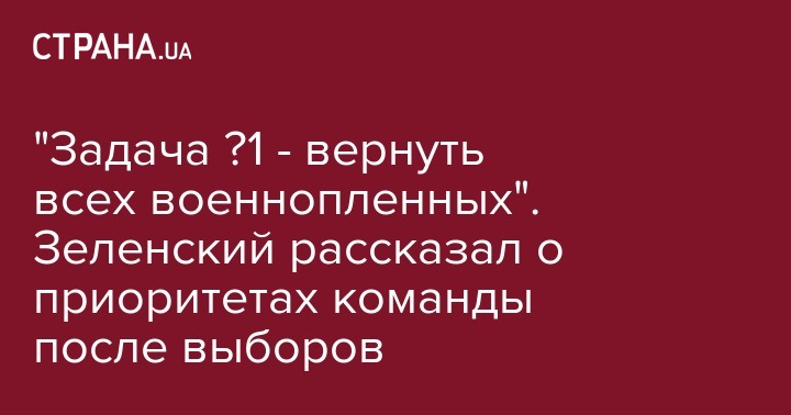 "Задача №1 - вернуть всех военнопленных". Зеленский рассказал о приоритетах команды после выборов