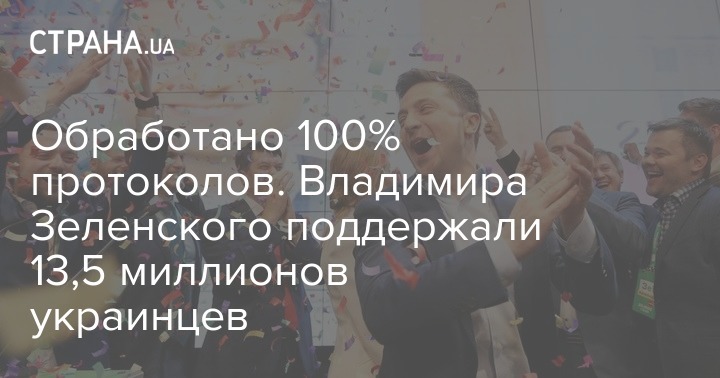 Обработано 100% протоколов. Владимира Зеленского поддержали 13,5 миллионов украинцев