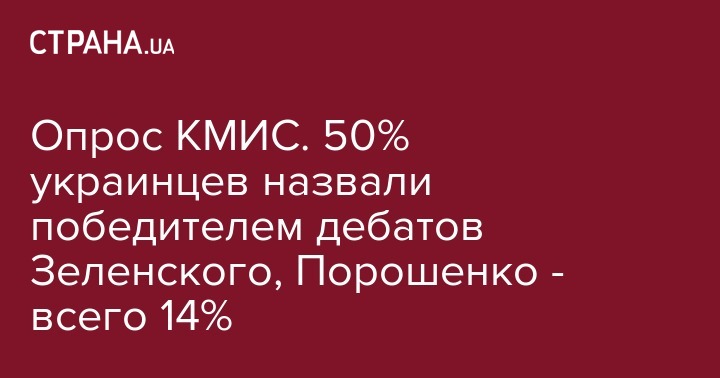 Около 50% контактировавших с трансляцией дебатов выразили мнение, что в дебатах победил Владимир Зеленский, 14% - за победу Петра Порошенко, еще 33% считают, что дебаты закончились вничью.