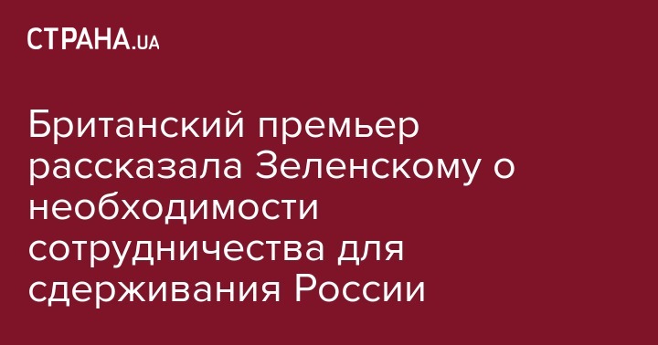 Также британский премьер заверила Зеленского в намерении укреплять двусторонние отношения между Лондоном и Киевом. Собеседники договорились оставаться в тесном контакте.