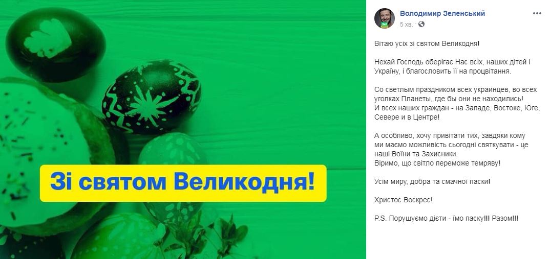 Щиро вітаю православних братів і сестер у Литві та в усьому світі з Великоднем! Нехай радість Воскресіння принесе щастя і спокій у Ваш дім. Христос Воскрес!