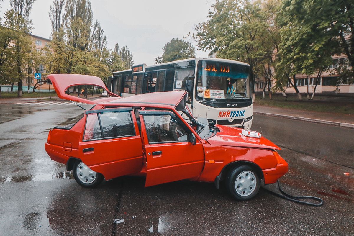 Предварительно, автобус маршрута №429 двигался со стороны кольцевой развязки, когда перед ним внезапно появилась "Славута". Водитель маршрутки не успел затормозить, и фактически смял легковушку. В салоне автомобиля также находились дети 2009 и 2013 годов рождения.