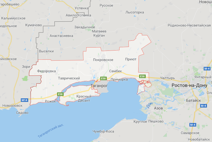Неклиновский район Ростовской области обозначен на карте красным Фото: google.com/maps