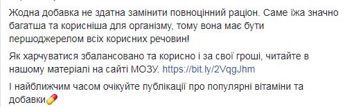 Результат от применения витаминных и биологически-активных добавок может быть не таким, как обещают производители, также могут быть побочные эффекты. Об этом в Facebook сообщила и.о. министра здравоохранения Ульяна Супрун.