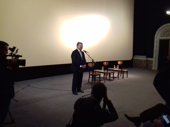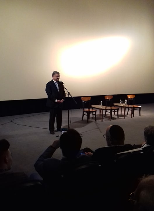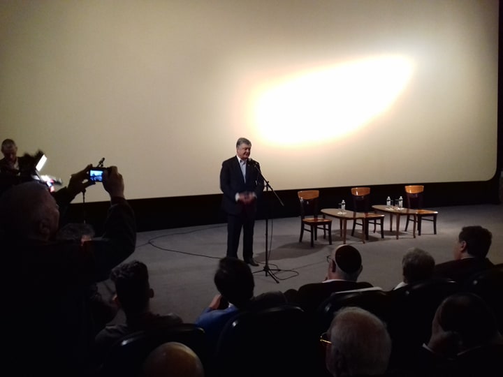 Порошенко перед показом выступил перед залом с речью. Он сказал, что имя Натана Щаранского он узнал из радиоэфиров "Радио Свободы" и "Голоса Америки".