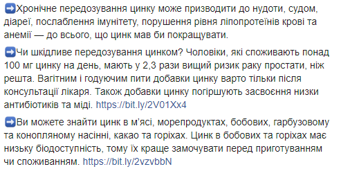 • Цинк необходим для работы иммунной системы, регуляции активности генов, заживления ран и работы мозга. Добавки цинка эффективны в лечении длительной диареи у детей и ее предупреждении, и рекомендованы при кишечных инфекциях. Достаточное потребление цинка может замедлить связанные с возрастом хронические болезни, остеоартрит, остеопороз и дегенерацию сетчатки глаза. Добавки цинка контролируют уровень глюкозы и баланс жиров у больных диабетом. Цинк необходим для образования спермы, его также могут прописать людям с ВИЧ. Недостаток цинка может проявляться в выпадении волос, дистрофии ногтей (сильном искажении), эректильной дисфункции, отставании развития у детей, частых простудных заболеваниях. Цинка чаще нехватает людям с алкоголизмом, нарушением усвоения нутриентов (при болезни Крона), а также будущим и кормящим матерям и веганам. Количество цинка, необходимого нам, зависит от возраста и веса, и колеблется от 5 до 12 мг/сут. Цинк НЕ накапливается в нашем теле - лишнее выводится с мочой. Доза 40 мг считается безопасной. Суточную дозу цинка следует принять за 2-5 приемов. Вы можете найти цинк в мясе, морепродуктах, бобовых, тыквенных и конопляных семечках, какао и орехах. Цинк - в бобовых и орехах имеет низкую биодоступность, поэтому их лучше замачивать перед приготовлением или употреблением.