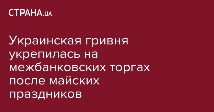 Украинская гривня укрепилась на межбанковских торгах после майских праздников
