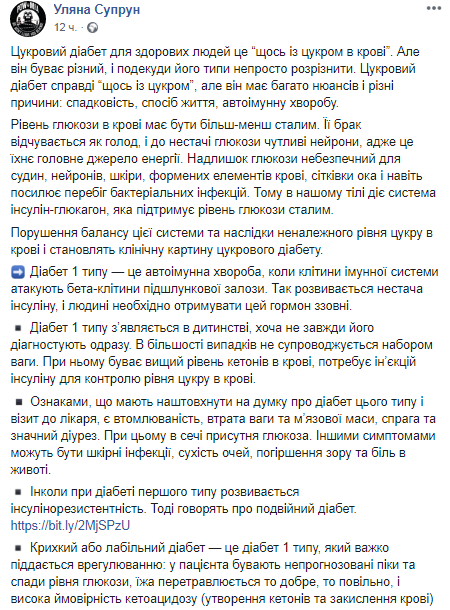 Скриншот: Facebook/ Уляна Супрун