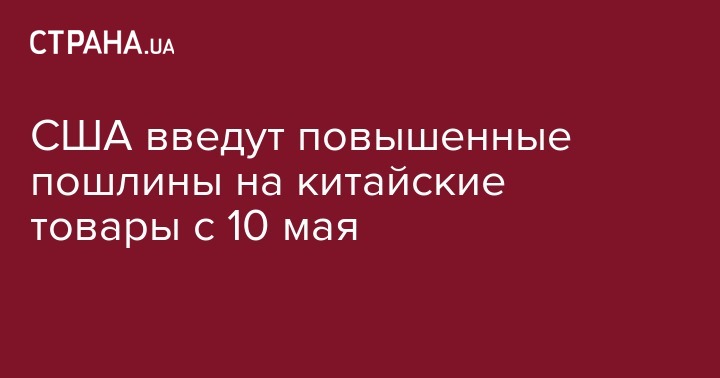 Ранее о решении повысить пошлины на импортируемую из Китая продукцию заявил президент Дональд Трамп. Объясняя свое решение, он написал в воскресенье в Twitter: "Торговая сделка с Китаем продвигается, но слишком медленно, так как они пытаются поменять договоренности. Нет!".