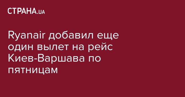 Ryanair добавил еще один вылет на рейс Киев-Варшава по пятницам