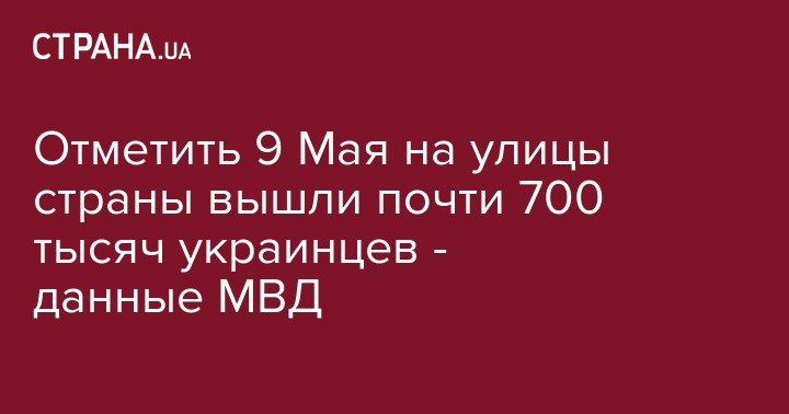 В Украине в акциях по случаю Дня победы над нацизмом во Второй мировой войне приняли участие около 700 тысяч человек, среди зафиксированных нарушений - использование георгиевских ленточек, символов тоталитарных режимов и хулиганство. Об этом сообщает "Интерфакс-Украина".
