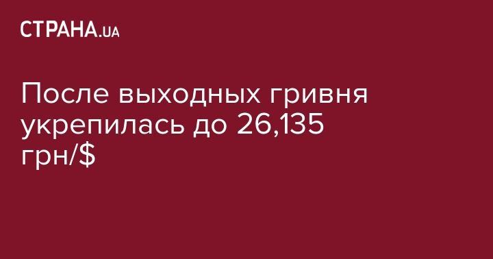 Курс украинской валюты на межбанке в понедельник, 13 мая, поднялся до 26,135 грн/$1 с 26,175 грн/$ в предыдущий рабочий день. Об этом сообщили дилеры коммерческих банков, передает Интерфакс-Украина.
