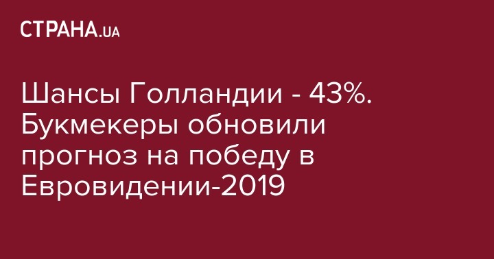 До полуфиналов шансы представителя Нидерландов оценивали в 21%. Сейчас этот показатель вырос до 43%. Более того австралийке Кейт Миллер-Хайдке, занявшей в прогнозе второе место, пророчат победу всего с 12%. Ранее певица занимала девятое место. Швед Джон Лундвик опустился со второго места на третье.