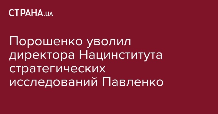 Президент Украины Петр Порошенко уволил директора Национального института стратегического исследований Ростислава Павленко и освободил его от исполнения обязанностей своего внештатного советника.  Соответствующие указы подписаны в пятницу и обнародованы на сайте президента.