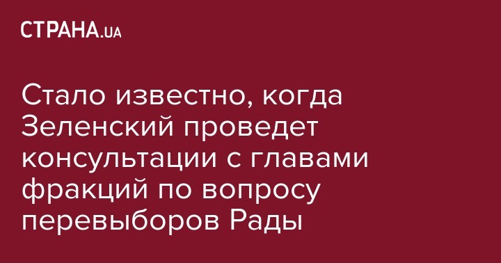 Президент Украины Владимир Зеленский пригласил руководителей фракций Верховной Рады провести во вторник утром в администрации президента консультации по вопросу роспуска парламента. Об этом пишет "Интерфакс-Украина" со ссылкой на лидера фракции в Верховной Раде Олега Березюка.