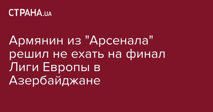 Армянский полузащитник лондонского "Арсенала" Генрих Мхитарян не сыграет в финале Лиги Европы с "Челси" в Баку. При этом власти Азербайджана разрешают ему въезд. Матч назначен на среду, 29 мая.