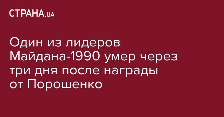 Один из лидеров Майдана-1990 умер через три дня после награды от Порошенко