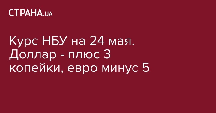 Курс НБУ на 24 мая. Доллар - плюс 3 копейки, евро минус 5