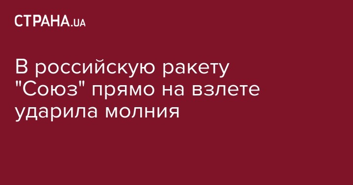 Молния попала в ракету-носитель "Союз", которая в понедельник, 27 мая, утром отправила на орбиту спутник "Глонасс-М" с космодрома Плесецк. Об этом сообщает "Интерфакс" со ссылкой на телеканал "Звезда".