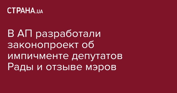 В АП разработали законопроект об импичменте депутатов Рады и отзыве мэров