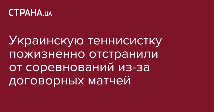Украинскую теннисистку пожизненно отстранили от соревнований из-за договорных матчей