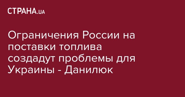 Ограничения России на поставки топлива создадут проблемы для Украины - Данилюк