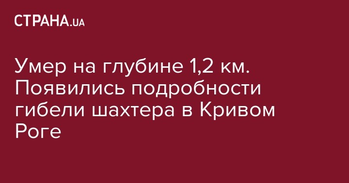 Умер на глубине 1,2 км. Появились подробности гибели шахтера в Кривом Роге