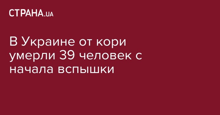 в Украине с начала года корью заболели около 53 тысяч человек, а от осложнений кори умерли 18 человек. Всего с начала вспышки заболевания (с лета 2017 года), корью заболели около 110 тысяч человек, 39 из которых умерли. Об этом сообщает пресс-служба Центра общественного здоровья Министерства здравоохранения Украины.
