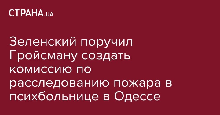 Глава Украины Владимир Зеленский поручил главе правительства Владимиру Гройсману немедленно создать государственную комиссию по расследованию пожара в одесской психиатрической клинике. Об этом президент написал в своем Twitter.