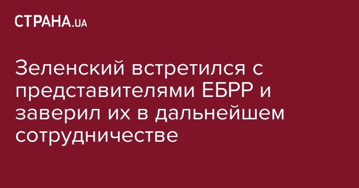 Президент Украины Владимир Зеленский в среду, 12 июня, провел встречу с делегацией Европейского банка реконструкции и развития (ЕБРР) и подчеркнул, что Украина и банк вместе могут работать эффективнее, сообщает сайт президента.