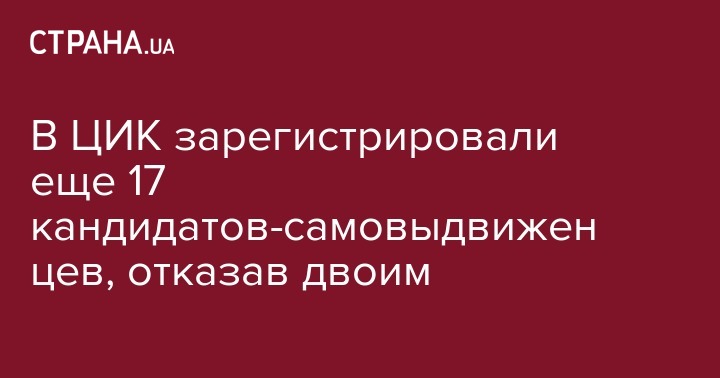 В ЦИК зарегистрировали еще 17 кандидатов-самовыдвиженцев, отказав двоим